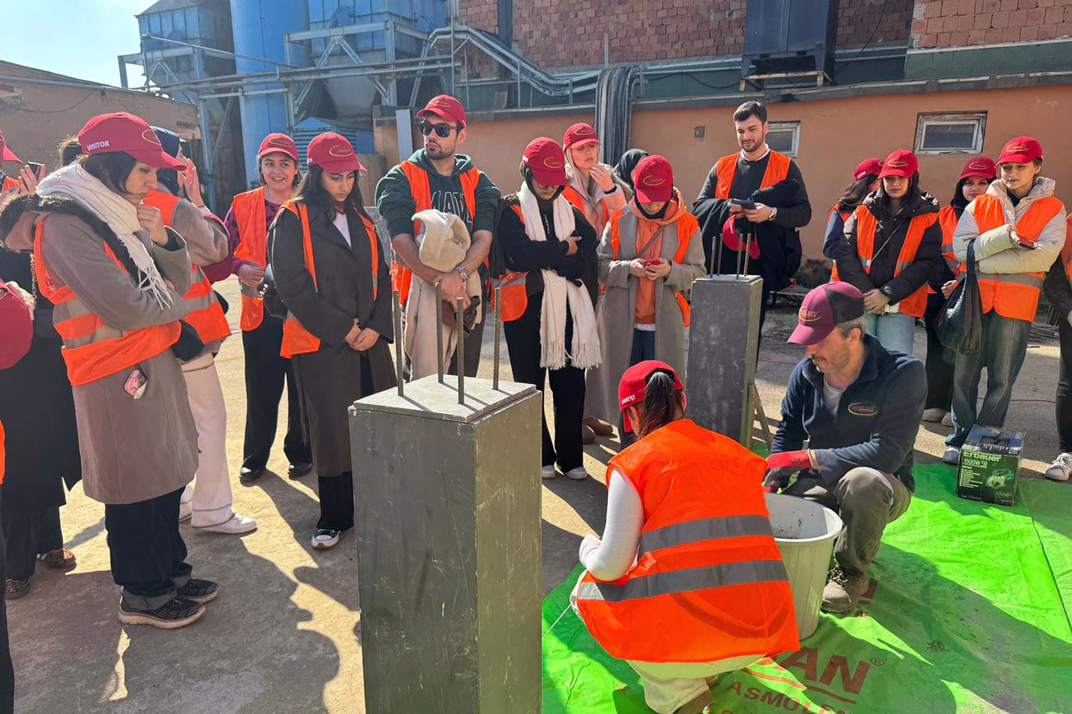 Şantiye ortamında gerçekleştirilen uygulamalarda ise öğrenciler, tuğla duvar örme sürecini birebir deneyimleyerek duvar başlangıç, köşe ve bitiş detaylarını yerinde gözlemleme ve uygulama imkânı buldu. Özellikle duvar–kolon birleşimleri ve lento uygulamaları öğrenciler tarafından aktif olarak gerçekleştirilirken, bu süreçte derz kalınlığı, mastar ve nivo kullanımı gibi teknik kriterler de dikkate alınarak değerlendirildi.