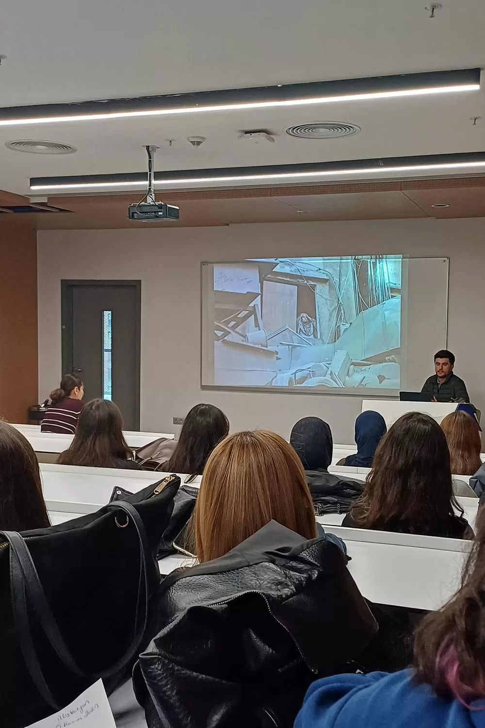 Atlas Üniversitesi öğrencileri, etkinlik boyunca Şengül’e foto muhabirliğinin sahadaki dinamikleri, kriz anlarında görsel seçimi ve dijital çağda fotoğrafın haber üretimindeki rolü üzerine sorular yöneltti. Etkinlik, öğrenciler için sektör deneyimine dayalı  etkileşimli bir öğrenme ortamı sağladı. Şengül’ün paylaştıkları, fotoğrafın sadece bir görüntü değil, bir bakış açısı ve sorumluluk taşıdığını hatırlattı. Söyleşi, soru-cevap bölümü ve toplu fotoğraf çekimiyle son buldu.