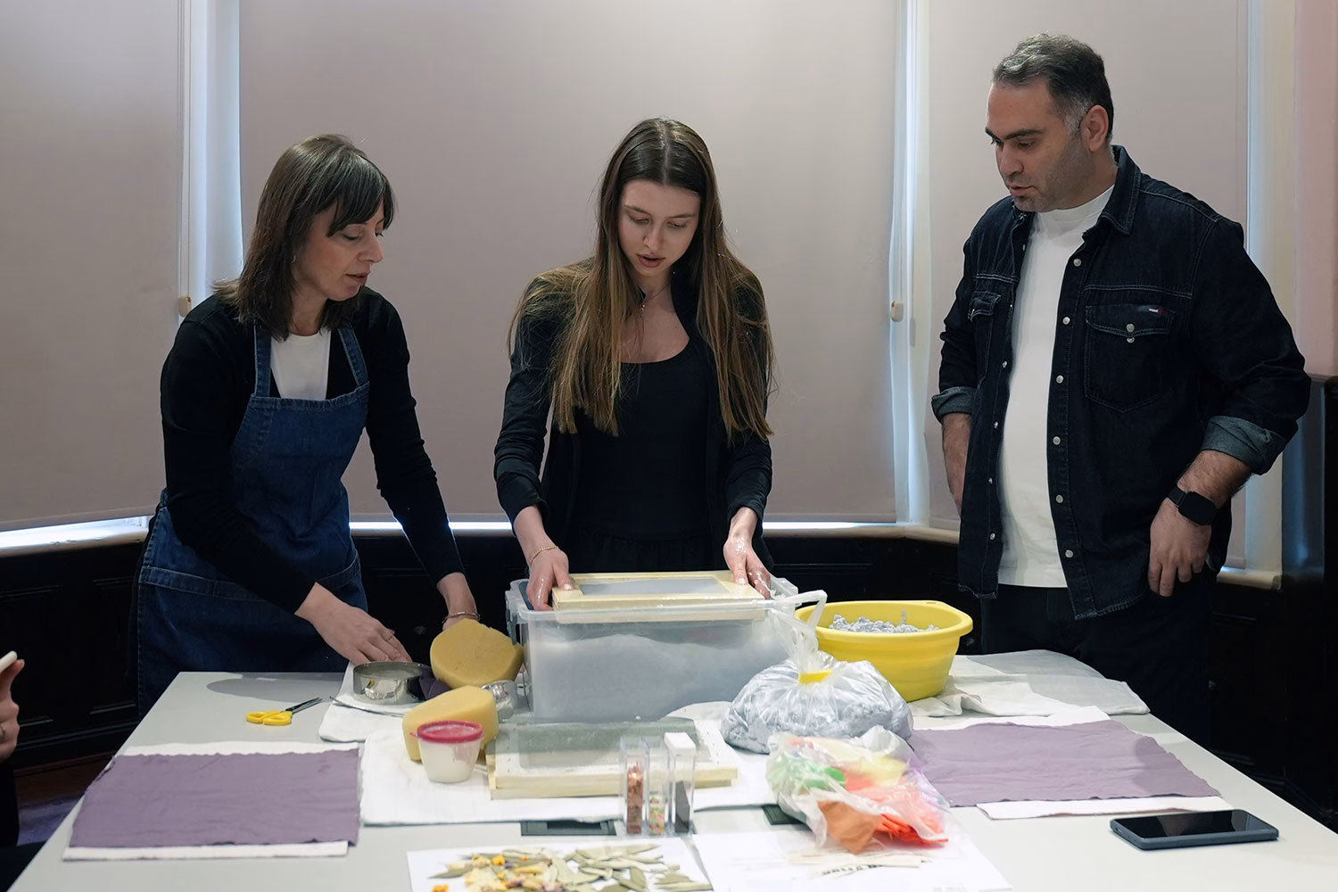 Atölye sürecinde ayrıca kâğıt üretim teknikleri uygulamalı olarak deneyimlenmiş, öğrencilerin kendi kâğıtlarını üretmeleri sağlanmıştır.