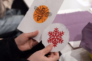 Geri dönüşüm yöntemiyle kâğıt üretiminin gerçekleştirildiği etkinlikte, elde edilen kâğıtlar farklı malzeme ve teknikler kullanılarak yaratıcı tasarımlara dönüştürülmüştür. Katılımcılar, sürdürülebilir üretim yaklaşımını deneyimleme ve özgün tasarımlar ortaya koyma imkânı bulmuştur.