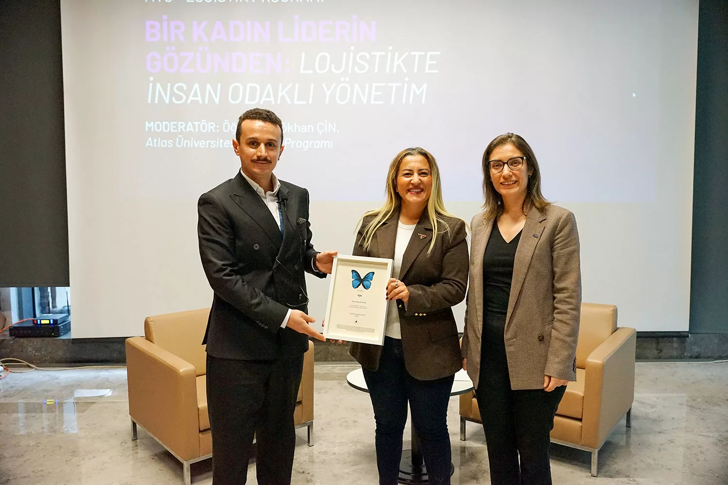 Etkinlik kapsamında öğrencilerin sorularını yanıtlayan Ebru Kavak’a, Lojistik Programı akademisyenleri ve Meslek Yüksekokulu Müdürlüğü tarafından plaket ve teşekkür belgesi takdim edildi.