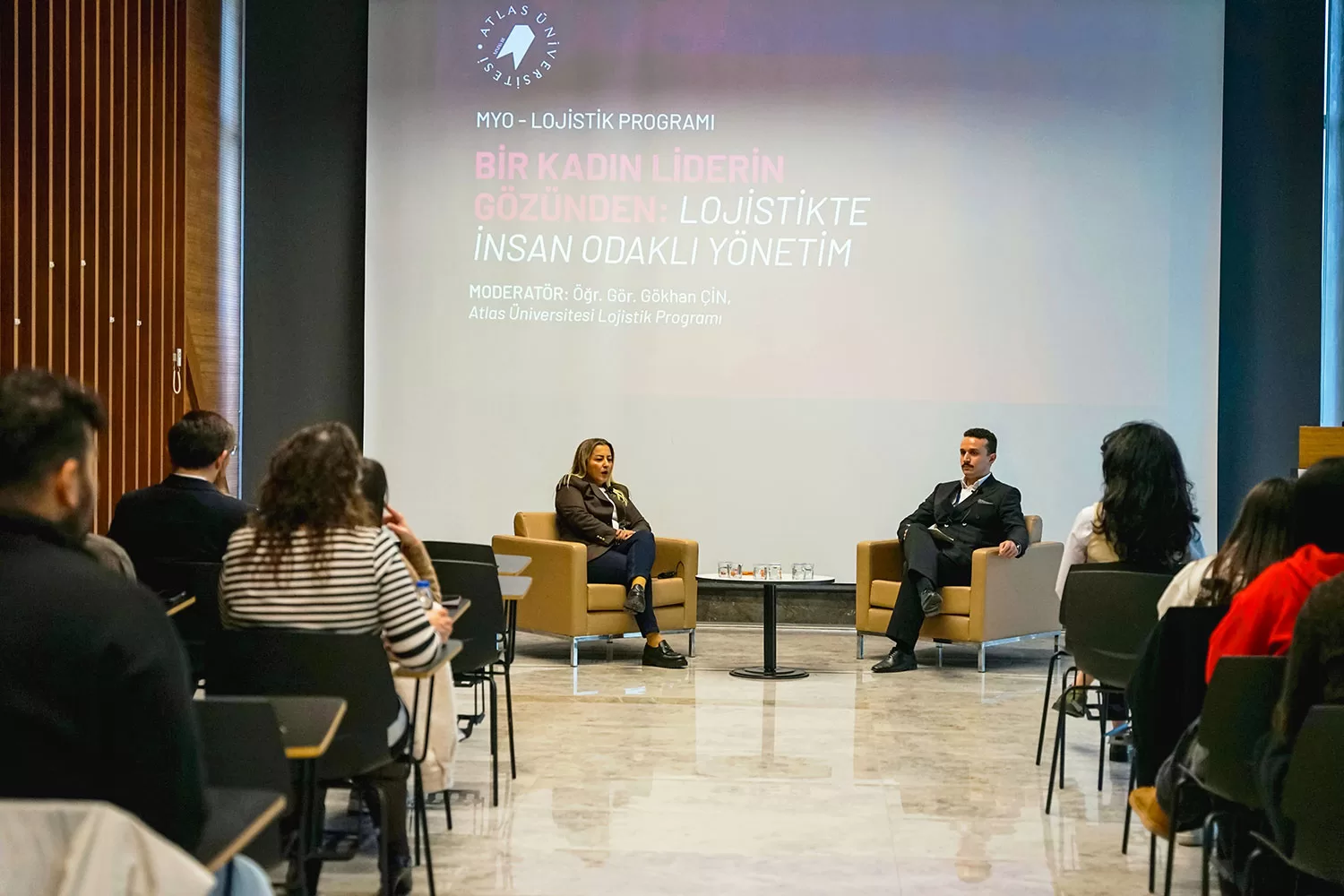 Birleşmiş Milletler “Sürdürülebilir Kalkınma Amaçları” ile Türkiye Cumhuriyeti “On İkinci Kalkınma Planı (2024-2028)” hedef ve politikaları çerçevesinde düzenlenen söyleşide öğrenciler, sektörünün başarılı bir yöneticisinden insan odaklı yönetimi, kadınların lojistik sektöründeki rol ve önemini, sürdürülebilir başarı için etkili liderlik yöntemlerini, yoğun dönemlerde operasyonel verimliliği sağlamanın gerekliliğini ve dijitalleşmenin rolünü dinleme fırsatı buldu.