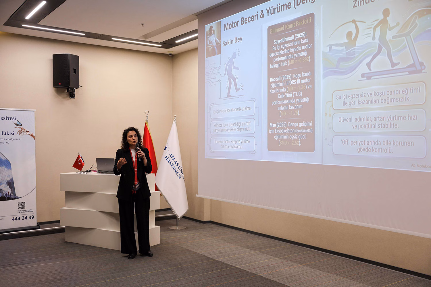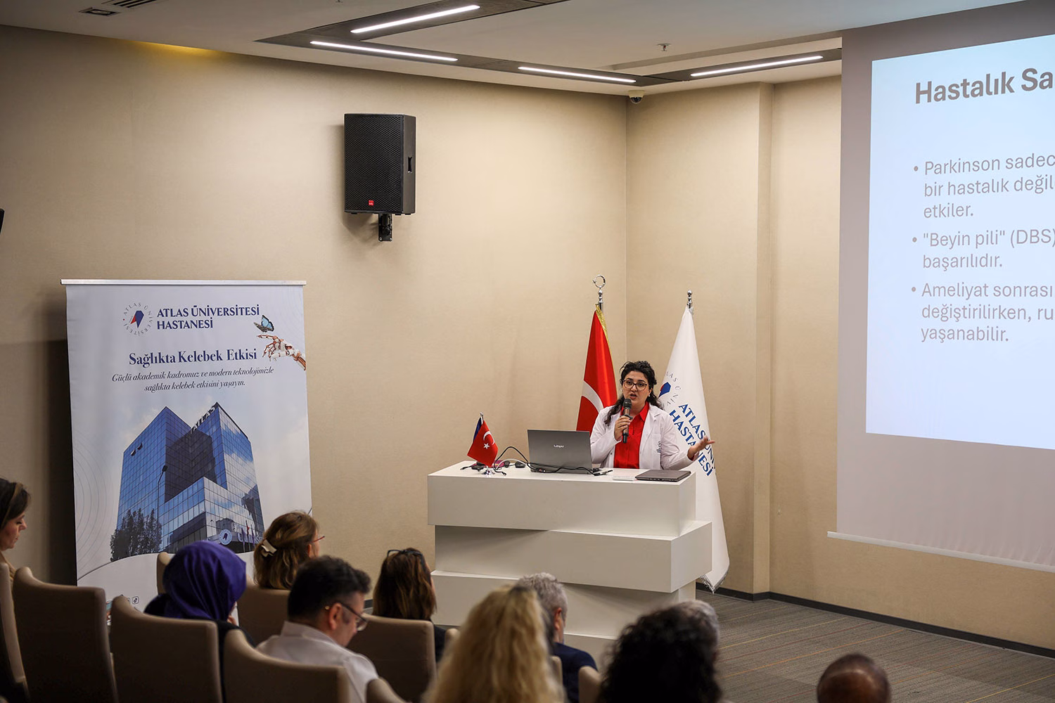 Atlas Üniversitesi Hastanesi Ruh Sağlığı ve Hastalıkları Anabilim Dalı’ndan Dr. Öğr. Üyesi Filiz Karalar, “Parkinson Hastalığında Psikiyatrik Belirtiler” ve Dr. Öğr. Üyesi Zuhal Doğan Bektaş, “DBS ve Psikiyatrik Semptomlar” hakkında bilgi verdi.
