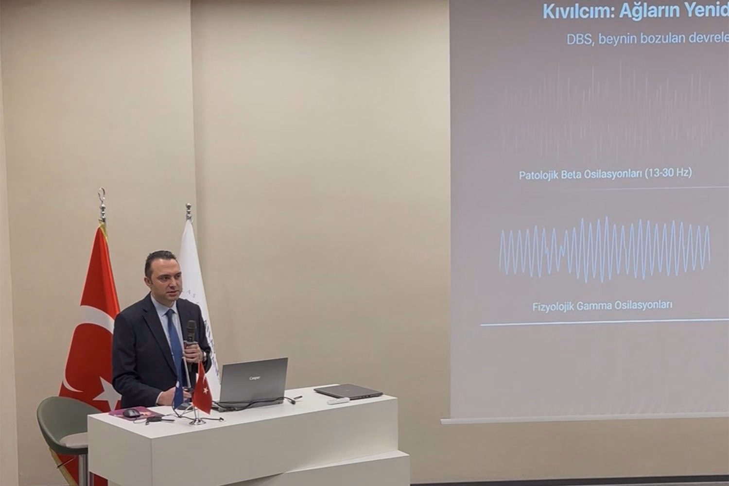 Atlas Üniversitesi Tıp Fakültesi Beyin ve Sinir Cerrahisi Anabilim Dalı’ndan Dr. Öğr. Üyesi Ali Osman Muçuoğlu, “Beyin Pili Parkinson Hastalığında Nasıl Yardımcı Olur?” başlıklı sunumunda Derin Beyin Stimülasyonu ve tedavideki önemini anlattı.