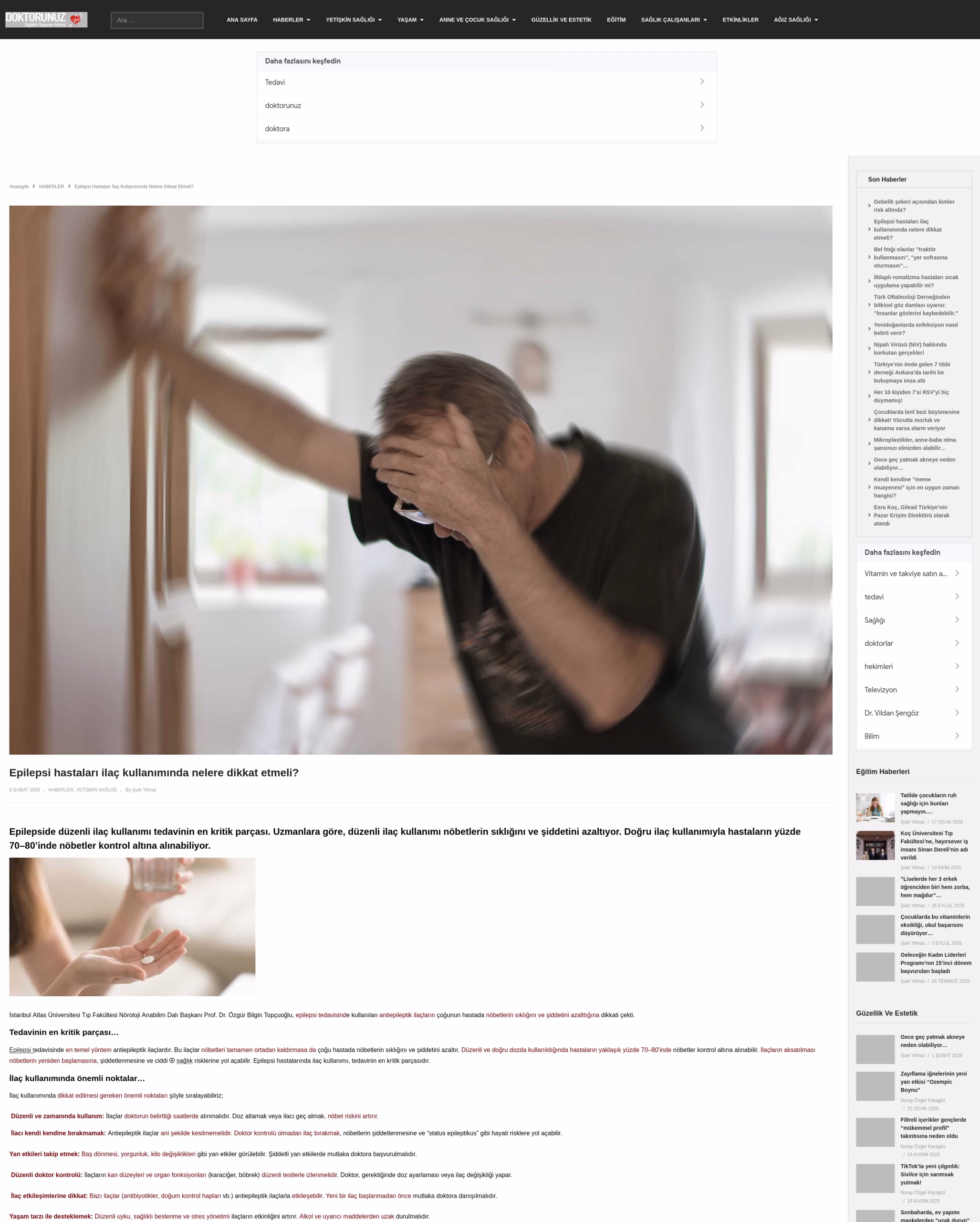 - İlaç etkileşimlerine dikkat: Bazı ilaçlar (antibiyotikler, doğum kontrol hapları vb.) antiepileptik ilaçlarla etkileşebilir. Yeni bir ilaç başlanmadan önce mutlaka doktora danışılmalıdır.