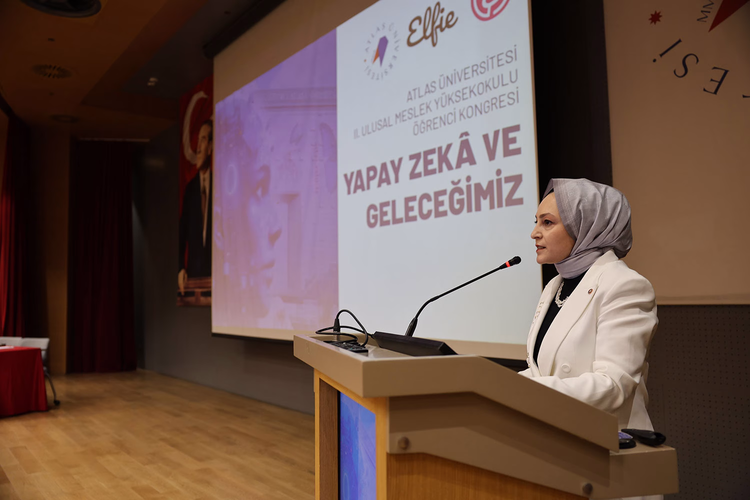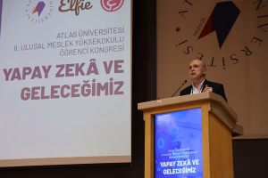 İstanbul Atlas Üniversitesi Meslek Yüksekokulu Müdürü Öğr. Gör. İlkay Altunsoy, dijital dönüşümün hız kazandığı çağımızda yapay zekânın sağlık, bilişim, tasarım, mühendislik ve daha pek çok meslek alanını yeniden şekillendirdiğini söyledi. Öğr. Gör. İlkay Altunsoy, “Bugün burada geleceği konuşmak, anlamak ve birlikte şekillendirmek üzere bir araya geldik. Bu yıl kongremizi ‘Yapay Zekâ ve Geleceğimiz’ temasıyla düzenliyoruz. Çünkü artık yapay zekâ yalnızca bir teknoloji başlığı değil; sağlıktan bilişime, tasarımdan tarıma, hukuktan girişimciliğe kadar hayatın her alanını dönüştüren güçlü bir gerçekliktir. Yapay zekâyı konuşmak kadar onu doğru anlamak, etik çerçevede değerlendirmek ve insanlık yararına kullanmak da hepimizin sorumluluğudur. Yapay zekâ çağında en büyük güç, teknoloji değil; onu anlamlandıran insan aklıdır. Ve biz, o aklı İstanbul Atlas Üniversitesi’nde birlikte büyütüyoruz.