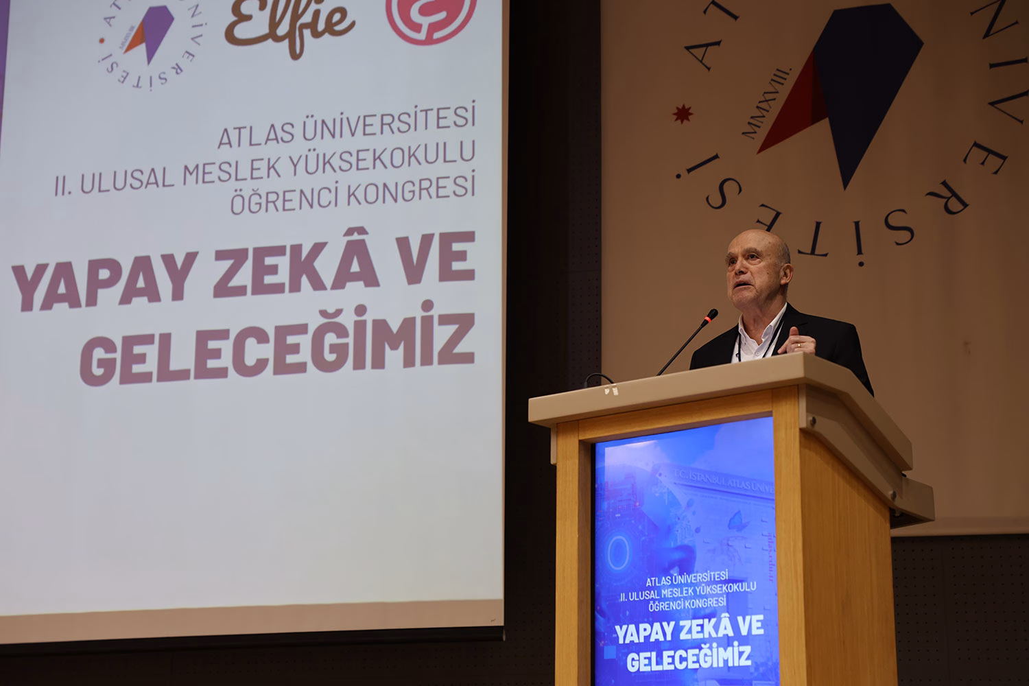 İstanbul Atlas Üniversitesi Rektörü Prof. Dr. Ersoy Kocabıçak, açılış konuşmasında yapay zekânın bugün insanların yaptığı pek çok şeyi yaptığını belirterek “Dijital dönüşümün yeni evresinde insanı değerli kılan nedir? Yapay zekâ insanı değerli kılan şeylerin yerini tutmaz ve hiçbir zaman da tutmayacak; çünkü yapay zekâ bilgi verir ama bilgelik vermez.” dedi.